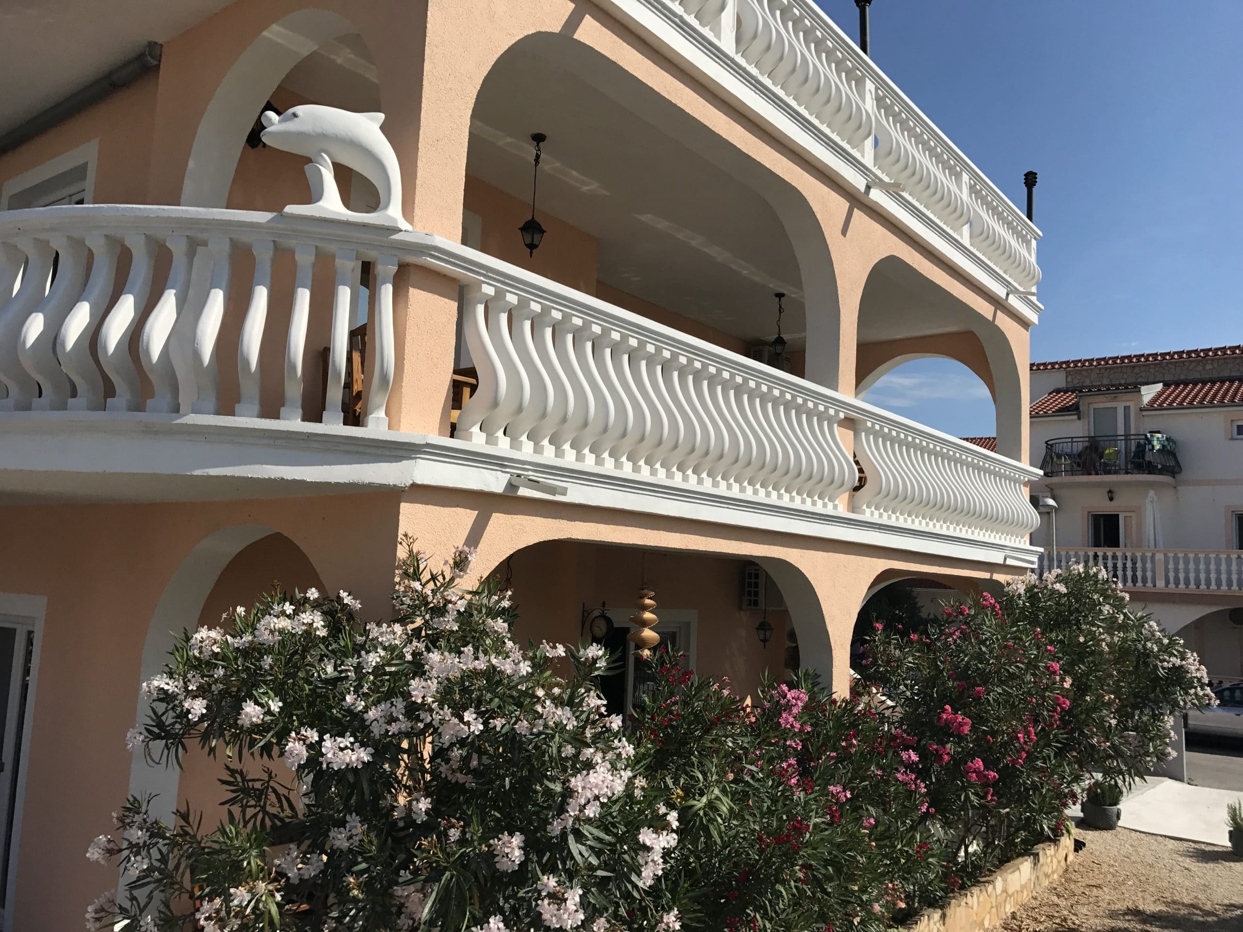 Ganzer 2. Stock mit zwei nebeneinanderliegenden Apartments - ideal für größere Familien oder Gruppen mit bis zu 8 Personen. Jedes Apartment ist modern ausgestattet mit WLAN, Flachbild-TV, Klimaanlage, Balkon, voll ausgestatteter Küche (inkl. Kaffeemaschine, Wasserkocher, Küchenutensilien), Dusche, schlüssellosem Zugang, kostenfreiem Parkplatz und Zugang zum Fitness-Center.